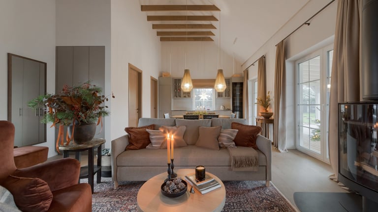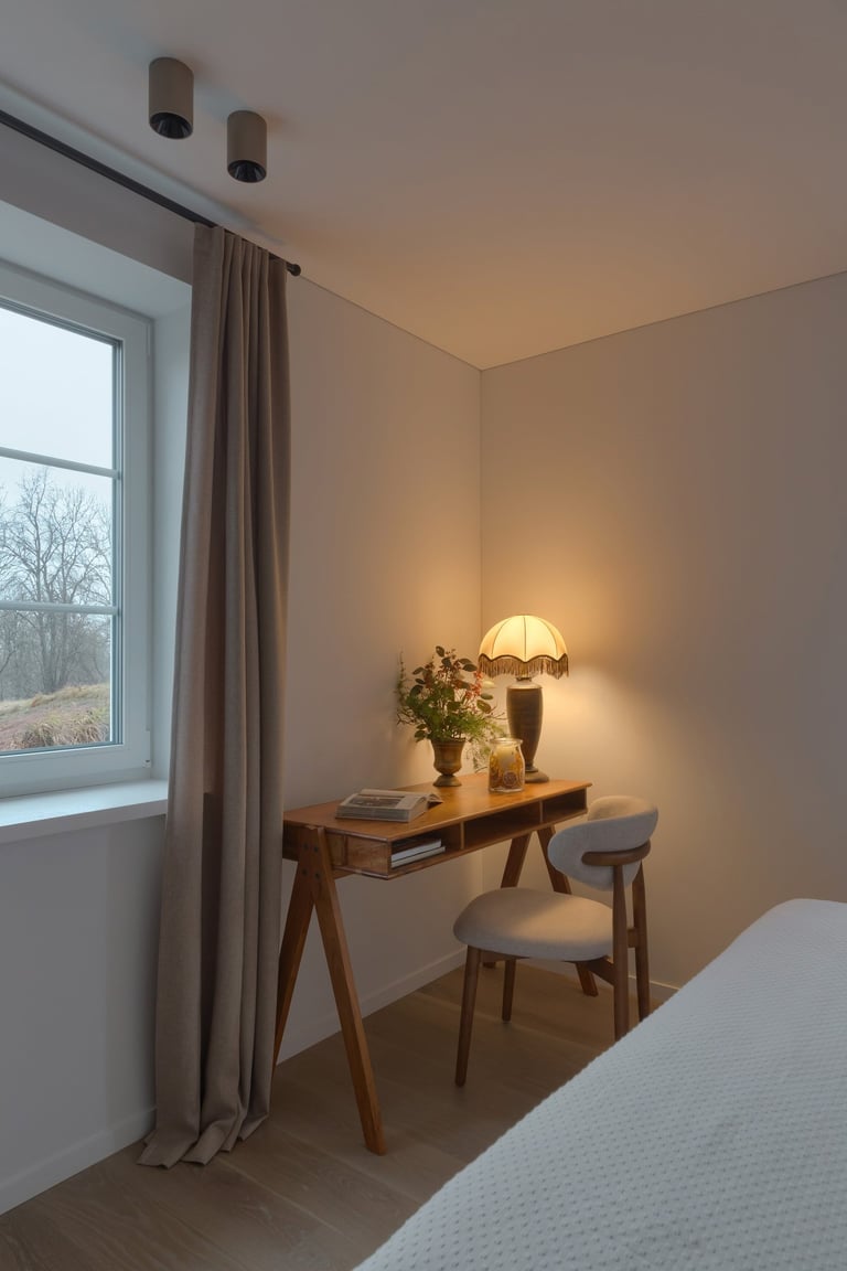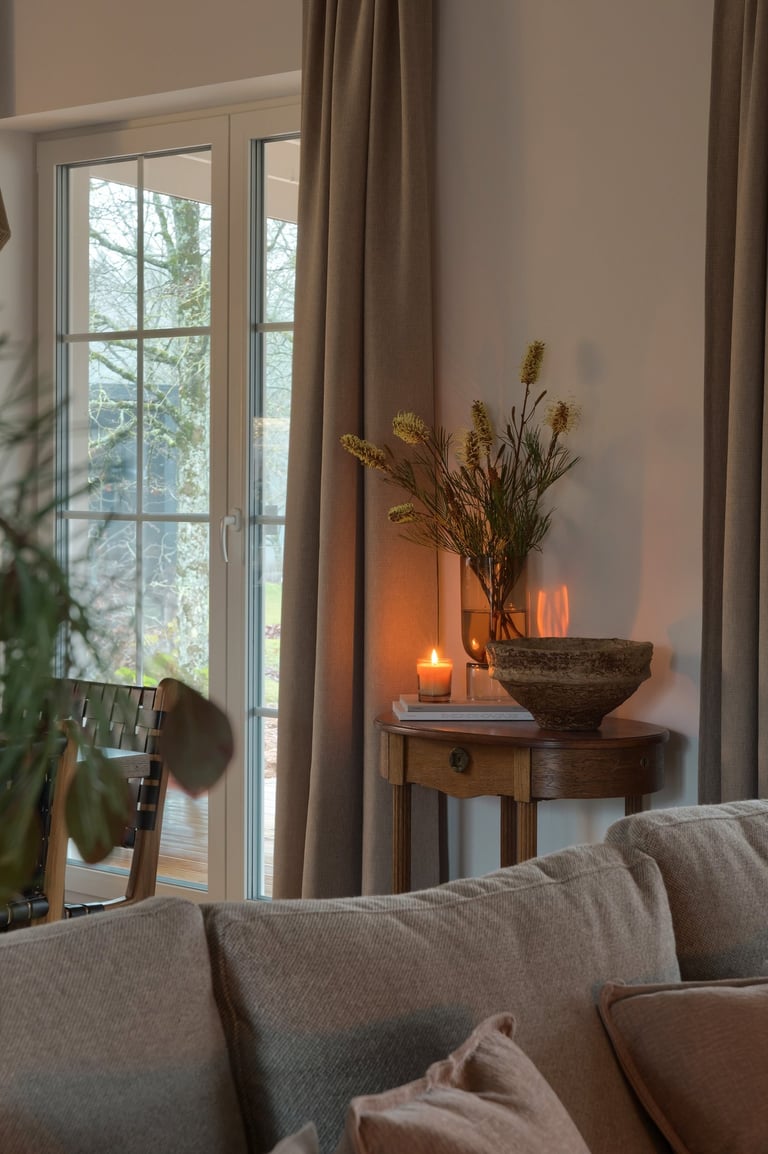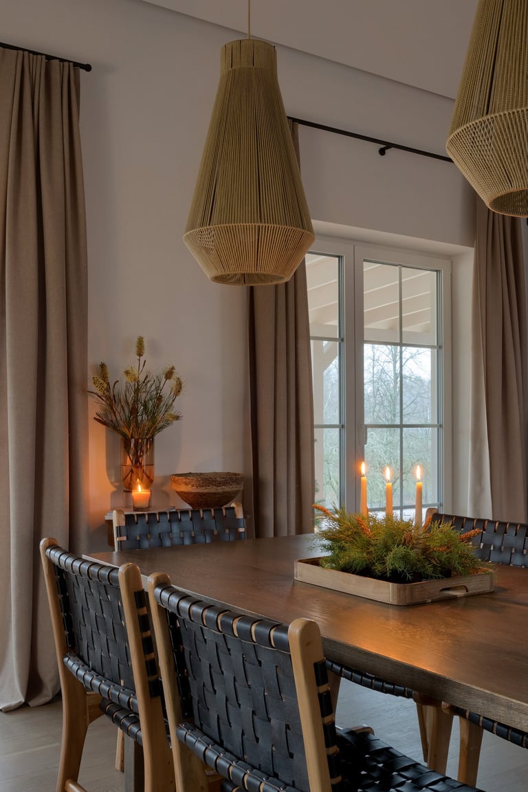 Erdves formavome ieškodami baldų ir kūrinių su istorija, kad namai nekalbėtų tik naujumo kalba, bet pasakotų savą istoriją. Rinkomės natūralų medį, jaukius audinius, šviesą ir augalus – tai, kas kuria gyvą, kvėpuojančią aplinką. Klasikinės formos suteikia elegancijos, o kruopščiai atrinktos smulkmenos – šilumos, minkštumo ir jaukumo pojūtį.