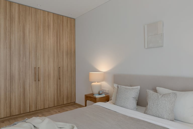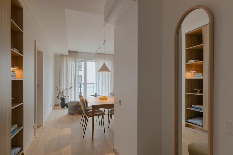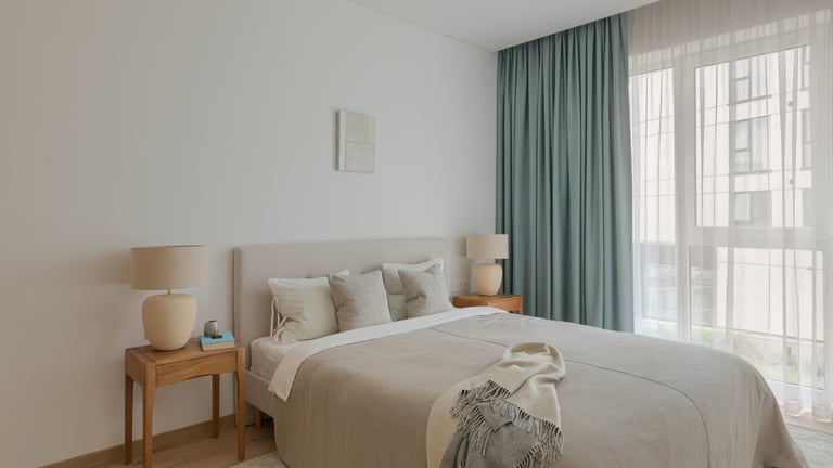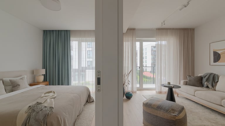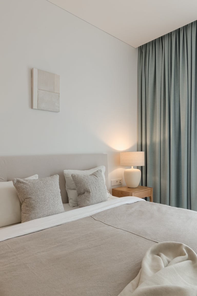 Mėlyna spalva interjere kuria ramybės, erdvės ir gylio pojūtį — ji tarsi kviečia įkvėpti giliau ir sulėtėti. Tai viena universaliausių spalvų, gebanti prisitaikyti tiek moderniuose, tiek klasikiniuose, tiek bohemiškuose interjeruose.